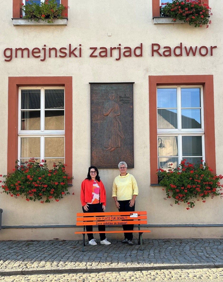 Gemeinsam mit der Gleichstellungsbeauftragten des Landkreises Bautzen, Frau Lenz, wurde am 06.11.2025 eine orangefarbene Bank aufgestellt. Diese Bank soll ein sichtbares Zeichen gegen häusliche Gewalt setzen.