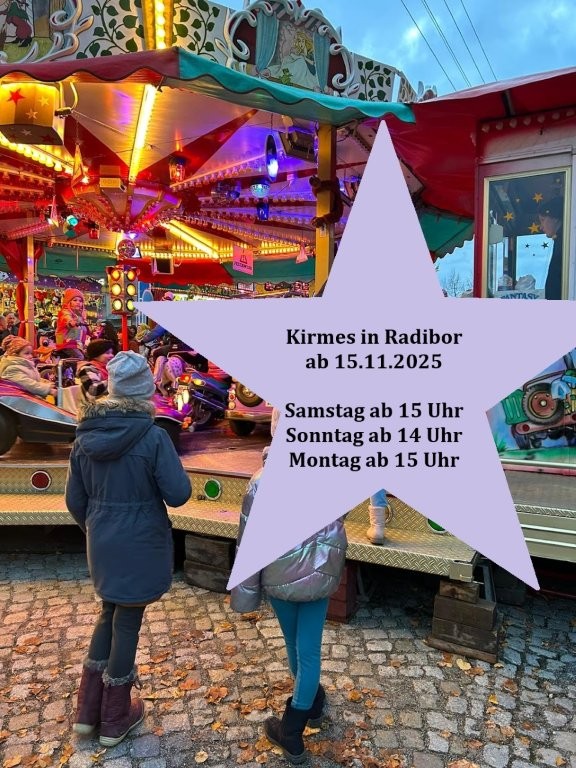 von Samstag, 15. November 2025 bis Montag, 17. November 2025 findet auf dem Dorfplatz in Radibor die diesjährige Kirmes statt.